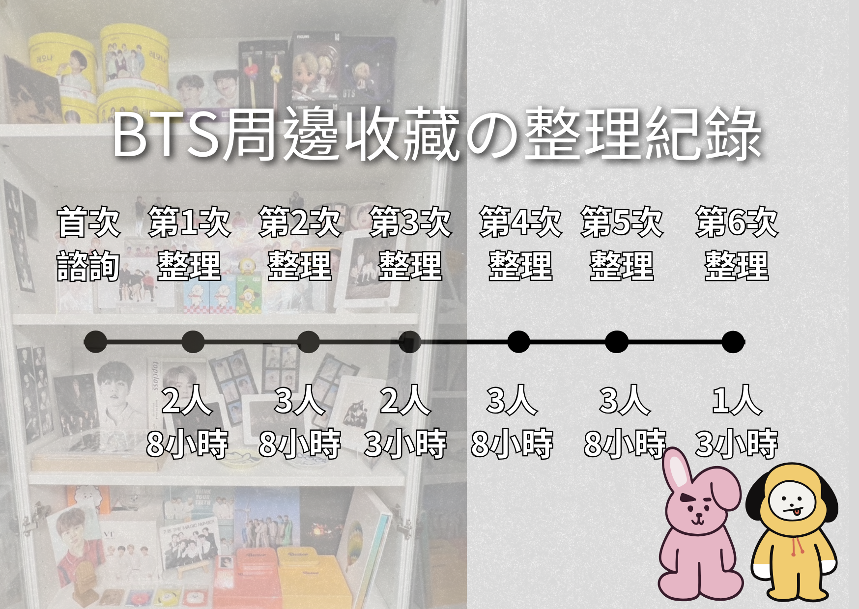 2024年9月接到一個特殊案件,案主林小姐。原本以為只是普通的臥房整理,諮詢後發現案情並不單純XD,林小姐擁有海量級的BTS明星周邊商品!!!